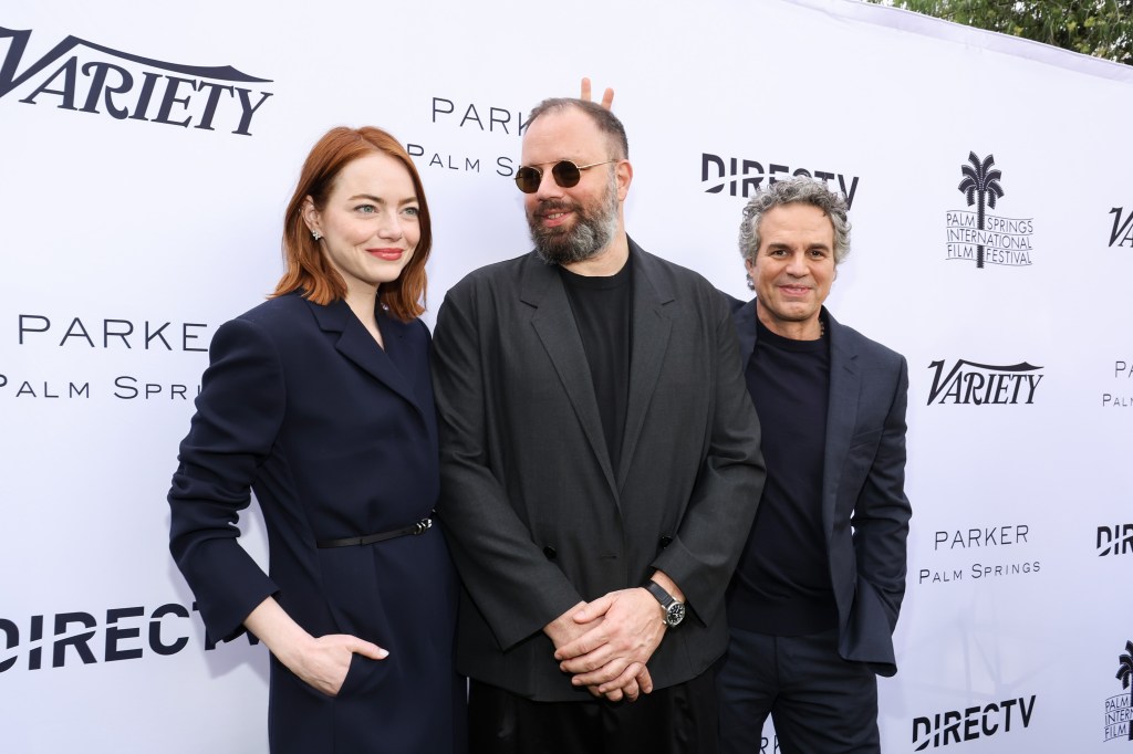 Emma Stone, Yorgos Lanthimos, and Mark Ruffalo.